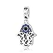Hamsa Charm Exquisite Craft:925 Sterling Silver(S925 Stamped) with Rhodium(White Gold) Finished to Prevent Tarnishing; Openwork Designed Hexproof Lucky Khamsah Hand Pendant Dangle Charms with Evil Eye Filled with Royal Blue Gemstones to Bring you and your family Good Luck