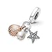 Sterling Silver Oceanic Tropical Starfish and Sea Shell Charm