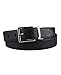 CALVIN KLEIN DESIGN: This Calvin Klein reversible dress belt is the perfect addition to your accessory collection - design features include a classic harness buckle and textured black strap that reverses to a brown ck micro emboss brown strap.