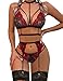 Design: Women sexy lace bralette bra and panty set v-neck babydoll lingerie set features a delicate lace fabric, a strappy bra with removabel choker, a g-string thong , a suspender belt.This set is perfect for showing off your killer body.