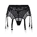 2 Pcs Gorgeous Black Lace Lingerie Set: High Waisted Lace Garter Belt ×1 + Mesh Thong×1.