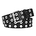 Grommets Studded Belt -- The double studded grommet on the black strap will easily give you a punk rock look during your casual life. The continuous metal eyelets make this unisex leather belt more convenient to adjust for different waist sizes.