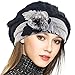 DESIGN: This Knitted French Beret. Simple and cozy, Wool and Angora surface knitting brim cuffed, soft fur lined.decorated floral,bow and Liffle fur.