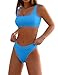 ✅ 【Two piece crop top bikini set women's athletic swimsuits offer great SUPPORT AND COMFORT】Trendy crop top bikini set with scoop neck has good support and coverage,looking cute and sporty.Removable padded swimsuit tops for women with wide bathing suit straps is supportive and snug.Push up swimsuit tops for women give nice breast shape.The sports bra swimsuit bikini for juniors is a tank top bikini,sporty bikini top with high waist high leg bikini set is casual and comfy to wear all summer.