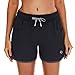 Unique Design -- This women board shorts for swimming with comfortable elastic at back waistband, with adjustable drawstring, drawstring closure, with brief lining. Two side pockets and one rear velcro pocket for convenient storage.