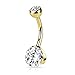 STYLE-Yellow gold plated cubic zirconia jeweled belly ring for women. Titanuim IP plated for color and then polished smooth.