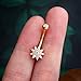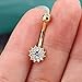【DESIGN】: 14K Solid Yellow Gold Delicate Cute Small Navel Rings Features Sparkling Petal Navel Piercing.10mm Curved Belly Bar.