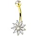 ❤1PC 14K Yellow Gold Belly Button Ring❤:14K solid yellow gold with 5A+ Clear CZ ,Shiny & Charming ,must be very beautiful on your belly.