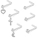 Multiple Sizes:All nose studs gauge are 22G(0.5mm),bar length 7mm--suitable for most people.To meet your needs for different occasions,gemstones of different shapes have different diameters,3mm heart nose stud,4mm flower nose rings stud,2.5mm clear circle cz nose piercing stud,with rich colors,nose body piercing jewelry is enough to attract the attention of others.
