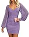 【Features】Deep V neck, Swiss dot, bishop mesh sleeves, long sleeve, midi dress, elastic cuff and waist, cross wrap dress, breathable material, bodycon dress, zipper closure,solid color.