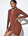 Feature:Women clubwear party vacation ribbied slim fit long sleeve tight stretchy long mini bodycon dress,solid color,ruched bodycon dresses,Shell buttons,make you more attractive.