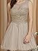 Features: 1). sleeveless V back; 2). Illusion crystals & gold lace applique bodice, built-in bra; 3).above knee length;