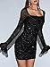 Features: polka dots print, rhinestone, sequins, mesh, sheer, square neckline, flounce sleeeve, pencil mini dress