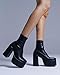 👢【Upper】The black platform boots are made of the elastic PU leather materials.The opening is easy to put on and take off.