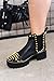 WHERE STYLE MEETS UTILITY: The black patent material complimented with gold spikes and studs pairs effortlessly with your everyday attire. Stand tall in the 1 inch platform front end outsole along with a 2 inch heel.