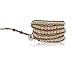 Unique Design The Gold Leather Bracelet Is Decorated With Beige Crystals, Natural Stone And Super Shinny Zirconia. Get The Eye Catching Wrap Around Bracelet For Your Daily Outfit.