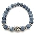 OWL BRACELET - SIZE - 7.5 inches. COLOR - dark blue, light blue veins. MATERIAL - Effloresce agate, 8 mm balls. PACKAGING - Nestled in a paper jewelry box lined with satin. Cute inexpensive teacher gift for best teacher ever.