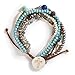 Beautiful fashion bracelet is made of quality copper and zinc alloy metals with glass, plastic, and freshwater pearl beaded embellishments.