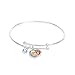 Slip-on bangle features a circular aquamarine blue crystal charm and a heart-shaped Anna and Elsa charm. Adjustable bracelet overlaps so you can widen or tighten the metal for personalized wear