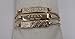 ?Gold-tone bangle with cutout link design, pave rhinestone accents and stamped logo