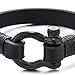 Mens Womens Black Steel Screw Anchor Shackles Wrap Bracelet Black Leather, Nautical Sailor Wristband
