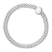 The Chic Stretch Bracelet boasts polished, Italian-made sterling silver and flaunts a mesh design offset by a singular, circular station