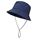 Design: Wide brim protects eyes from the sun, simple style design, never out of date. Can adjust the size for optimal fit with the elastic drawstring buckle behind the fishing hat. Portable, packable, and easy to stuff in a backpack, travel bag, or jacket pocket