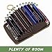 Latches safely and securely when not in use. Rounded corner wouldn't damage on your clothes. With 7 accordion Slots, Capacity for up to more than 9 credit cards or more than 55 business cards.
