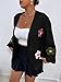 Feature: long sleeve, bishop sleeve, drop shoulder, open front, flower applique, womens crop sweater