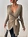 Feature: long sleeve, deep v neck, knot side, rib-knit, casual style