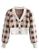 Features: plaid print, lantern sleeve, center front button closure, v neck, long sleeve, cropped hem