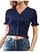 👚Features: Ruffle short sleeve, hollow out kintted sweater shirt is fashion and elegant. v neck , pure color , buttom down, ruffle hem.