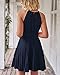 CASUAL DRESSES FOR WOMEN: The Sleeveless Halter Neck Dress Highlights The Pretty Shoulders, Shows Your Feminine Charm. The Women's Sundress With Self Tie Belt Forming an A-Line Shape;The Pleated Hem On The Skirt Part Adds a Touch Of Playful To This Casual Mini Dress