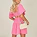 Feature: Casual Midi Dress, Short Sleeve Midi Summer Dresses, V Neck, Collar, Button Up, Drawstring Waist, Tie Front, Flared Midi Dress
