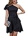 【Unique Feature】This cocktail dress features one shoulder, flared short sleeves, ruffle hem, a line silhouette, a hidden zipper on the left side, matching waist tie.