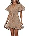 Allover print, short sleeve, wrap v neck, ruffle hem, high waist, a line short dress