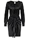 【Feature】Long sleeves, crew neck, tie waist, button cuffs, ruched detailing with necking and shoulder, elastic tie waist, solid color, womens satin mini dress.