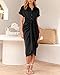 FEATURES: Size: S=US 4-6,M=US 8-10,L=US 12-14,XL=US 16-18 / Womens Summer Dress / Spring dresses for women / Shirt Dress For Women / Button Down Satin Dresses / Women’s Maxi Dress / Long Sleeves Or Short Sleeve / Lapel V Neck / Tie Waist / Front Ruched Details / Soft Lightweight Satin Fabric / Casual And Elegant