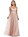 Features: V-neck, short sleeve, lace, tulle, beading, A-line, off-shoulder, long party dress, maxi bridesmaid dress, evening party dress