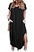 Split short sleeved maxi dress; semi-formal floor length day dresses; office wear outfits; Black elegant sundresses; simple solid color maxi; stretchy elastic waist dresses; pregnancy gown; travel holiday vacation cruise maxi sun dress