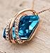 Pendant measures 0.75" by 0.6"; Chain length is 18" with 2"extender; Lobster claw clasp; 18K rose gold plating; Galatic fancy stone, zircon blue; Flatback zirconia rhinestones, crystal AB color