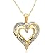 Elegantly crafted heart pendant in 14K yellow gold over sterling silver, adorned with cluster of natural round and baguette diamonds 1/4 Cttw and a 18 inch box chain that turns you absolutely gorgeous