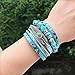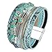 ✱ GORGEOUS LUCKY FEATHER DESIGN ✱ Feather, an ancient charm that represents the journey of the soul to the other realm, wear this special feather leather cuff bracelet and make a wish, the more you believe, the luckier you will be.. Our unique & cute womens leather bracelet features multiple strands of leather cords combination in different texture, highlighted with an ancient silver feather charm and seeds Turquoise stones bring an instant boho style look
