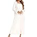 Lu's Chic women's white long sleeve nightgown, scoop neck sleepwear, ruffle design on the collar, sleeve and hemline, elastic band on the sleeve, lace trim on the hemline, knee length