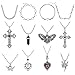 Gothic Necklace Set: Goth necklace set includes Evil Eye Necklace, Cross Necklace, Angel Heart Wing Necklace, Handcuff Necklace, Spider Necklace, Bat Necklace, Skull Necklace and more. 12 different styles of gothic necklaces with adjustable lengths to meet your every need and need for different occasions.