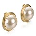 ☆ Flat-circular Round Button Pearl Clip on Earrings for Women:A round metal surrounds 1 large shiny creamy yellow pearl, like a satellite in orbit.A symbol of "take you as the center".Size: 0.71*0.71inches.(1.8*1.8cm)
