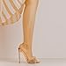STYLE: Sling-back, high heeled, faux wood mule clog sandal. Has behind the heel strap, adjustable ankle buckle, with studded sides.
