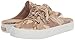 Slip-on sneaker with mesh upper featuring faux-leather overlays, contrast midsole, and "S" logo at side. 3/4 inch built in heel