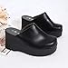 FEATURES: Platform chunky heel, closed toe, open back, wooden clogs for women, mid heel, solid color, arch support, square toe, dress shoes.