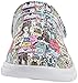 Round toe, vibrant printed synthetic upper, side elastic gores